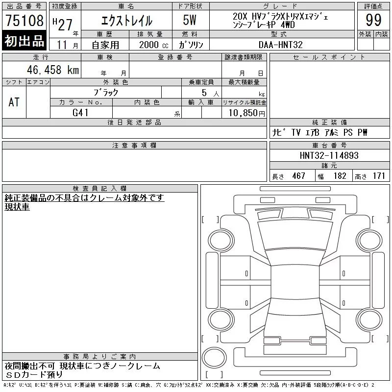 20X BLACK X-TREMER X EMERGENCY BRAKE PACKAGE | DBA-NT32 | MR20DD | Full-time 4WD | CVT | 1997cc | 147ps(108kW)/6000rpm | AИ-92 | 2 893 320 | |