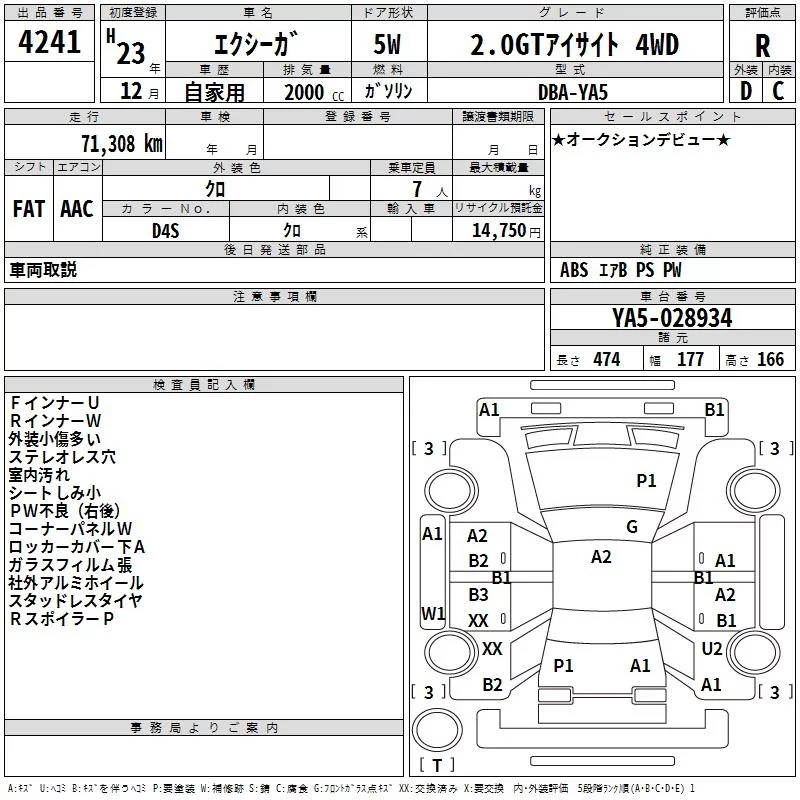 • Комплектация: 2.0GT Eyesite 4WD