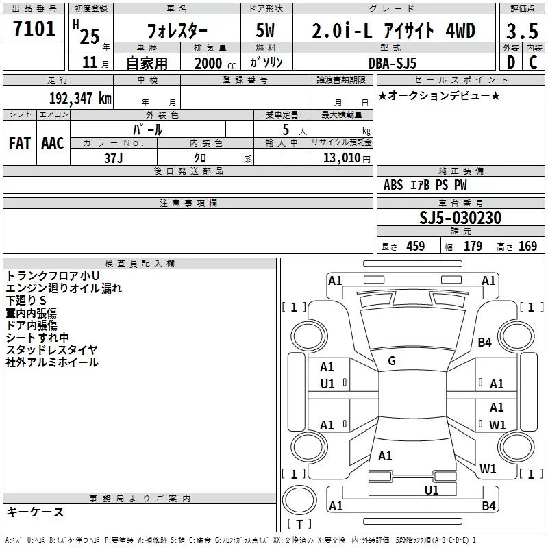• Комплектация: 2.0i-L Eyesite 4WD