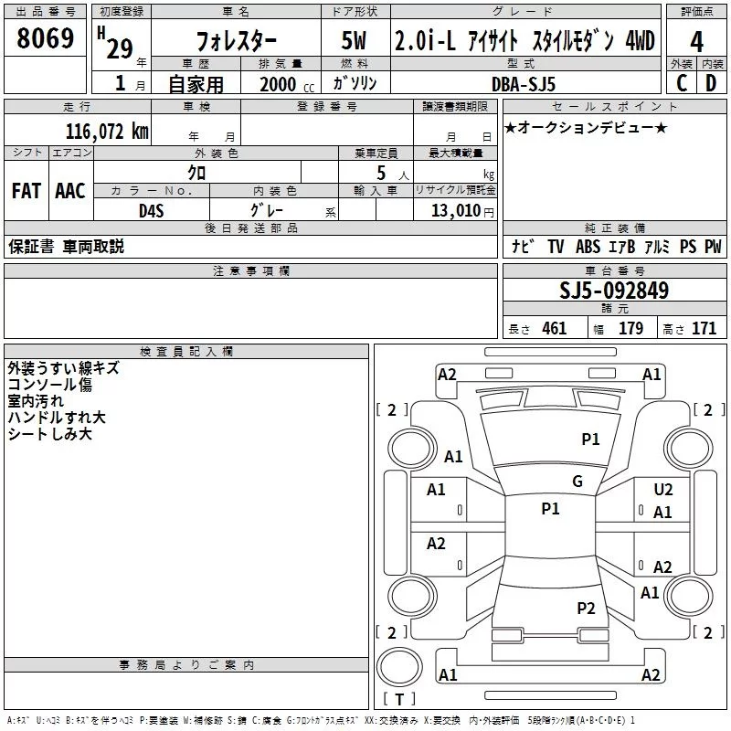 • Комплектация: 2.0i-L Eyesite Star イ 4WD