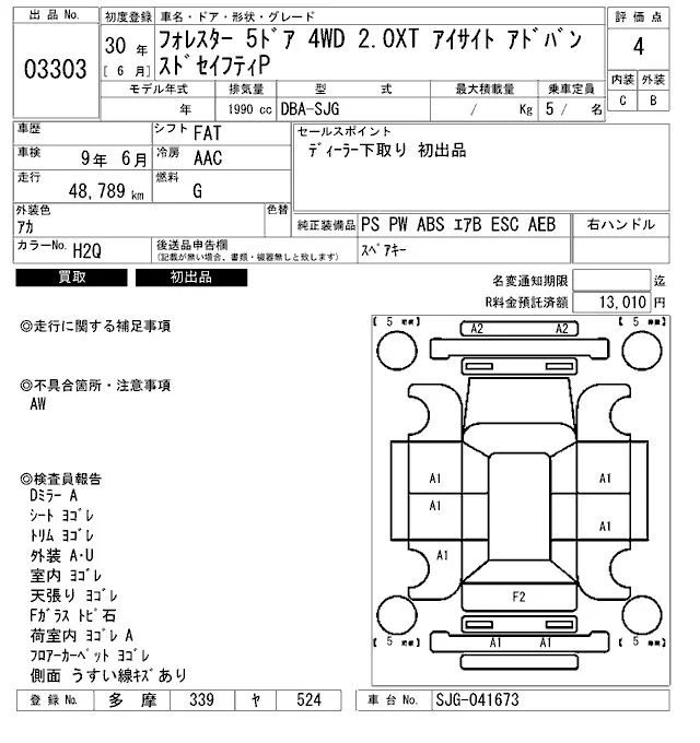 • Комплектация: 2.0XT Eyesite Advanced セイフティP
