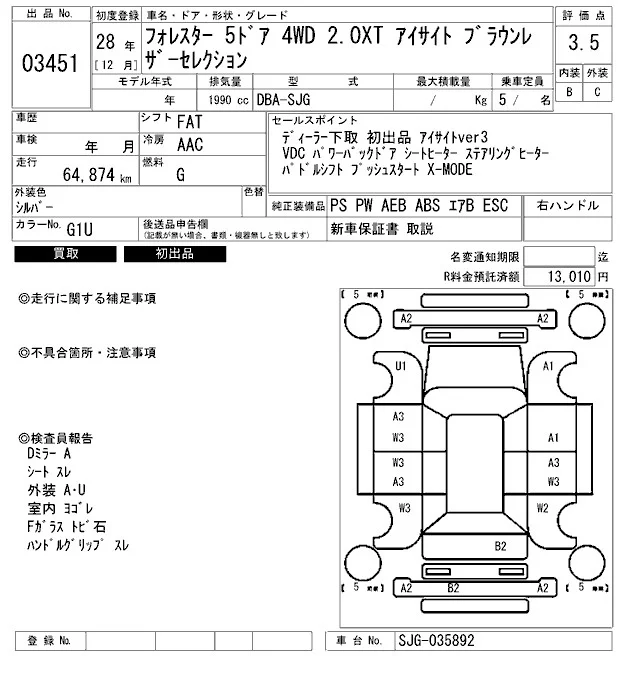 • Комплектация: 2.0XT Eyesite ブラウン Leather - Selection