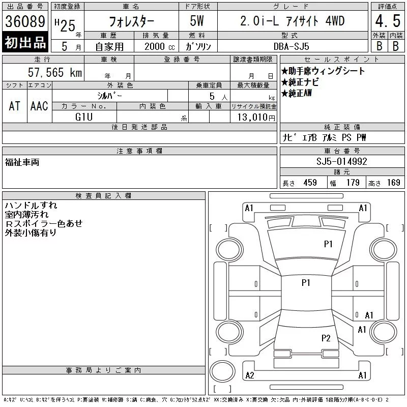 • Комплектация: 2.0i-L Eyesite 4WD
