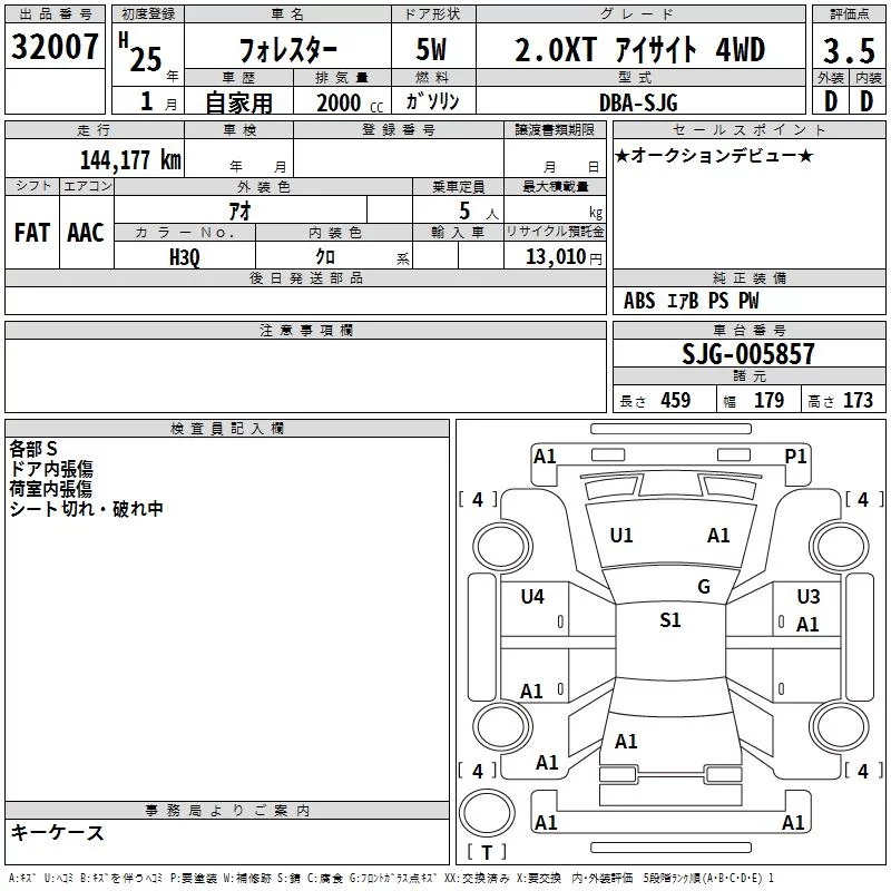 • Комплектация: 2.0XT Eyesite 4WD