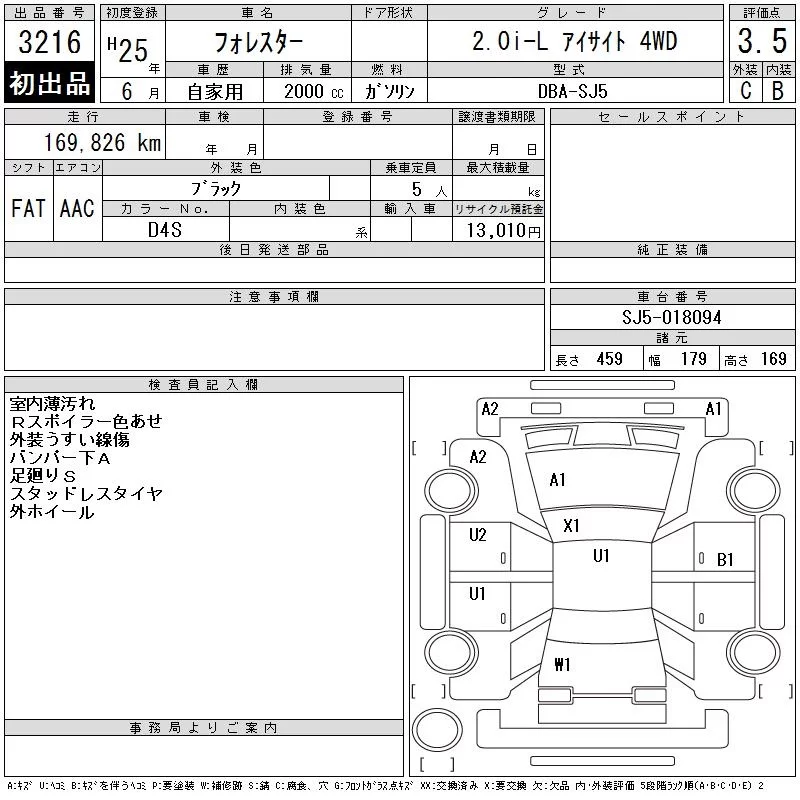 • Комплектация: 2.0i-L Eyesite 4WD