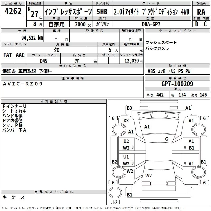• Комплектация: 2.0i Eyesite プラウド 4WD