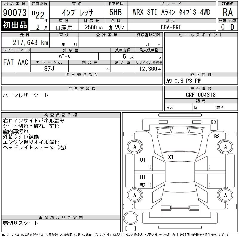• Комплектация: WRX STI A Line タイフ 4WD