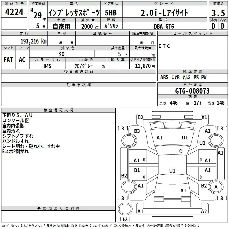 • Комплектация: 2.0i-L Eyesite