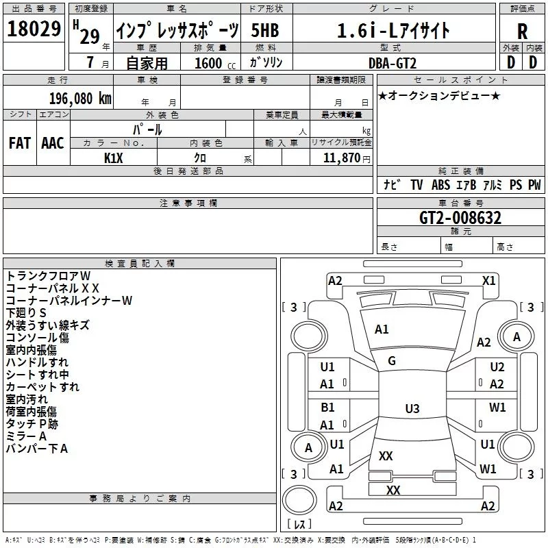 Subaru IMPREZA 2017 • 943016 ₽ под ключ из Японии