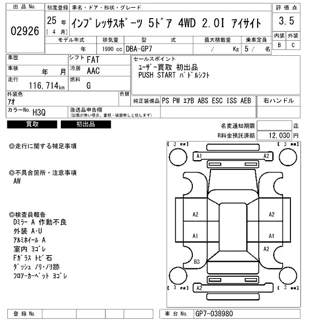 • Комплектация: 2.0i Eyesite