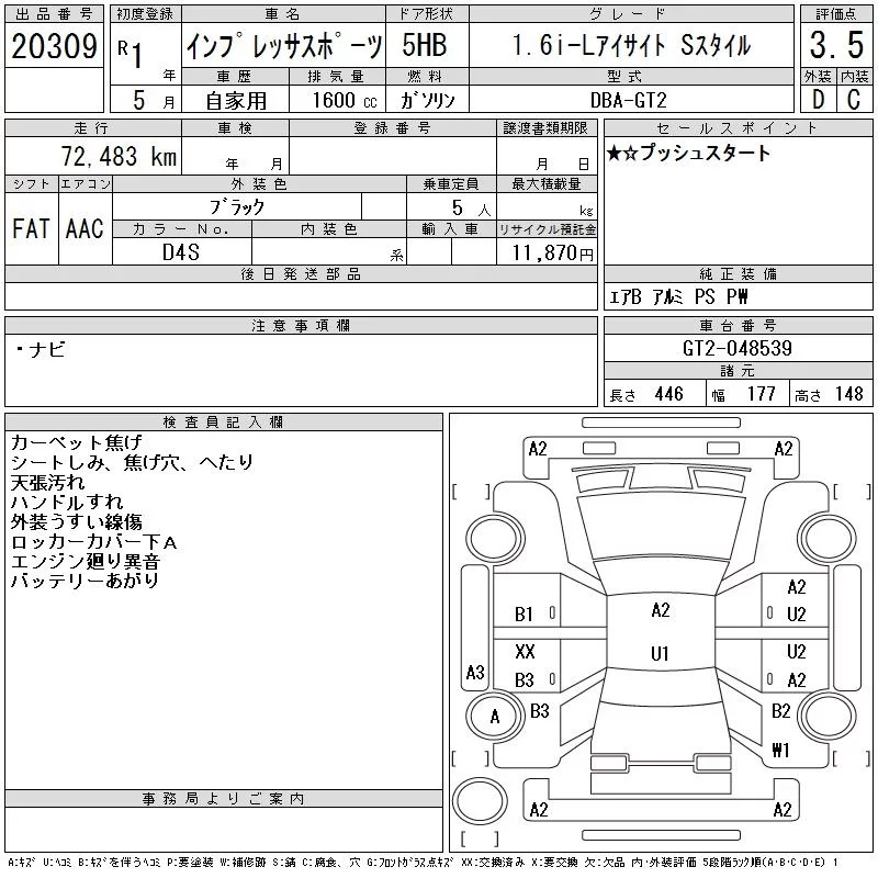 • Комплектация: 1.6i-L Eyesite S Style