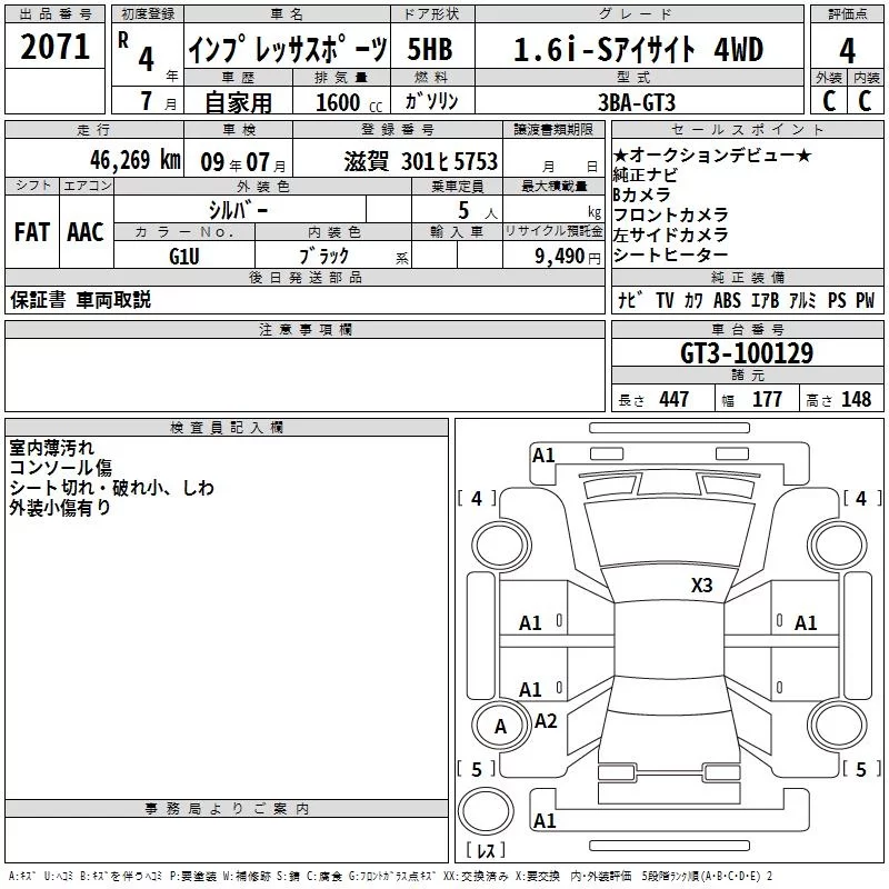 • Комплектация: 1.6i-S Eyesite 4WD
