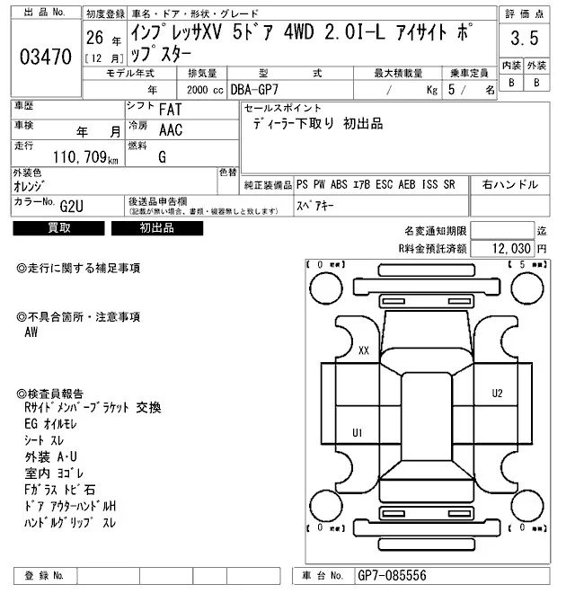 • Комплектация: 2.0I-L Eyesite ポップ Star