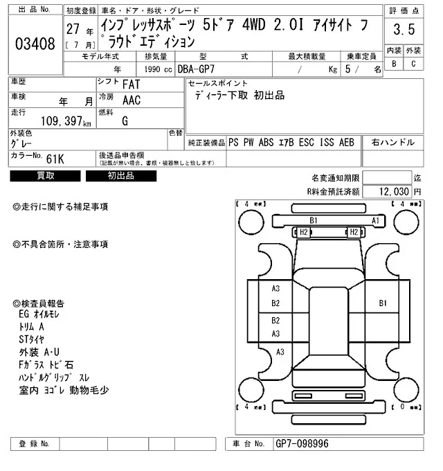 • Комплектация: 2.0i Eyesite プラウド Edition
