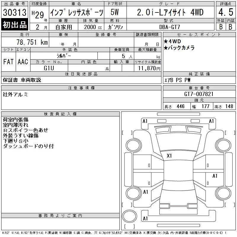 • Комплектация: 2.0i-L Eyesite 4WD
