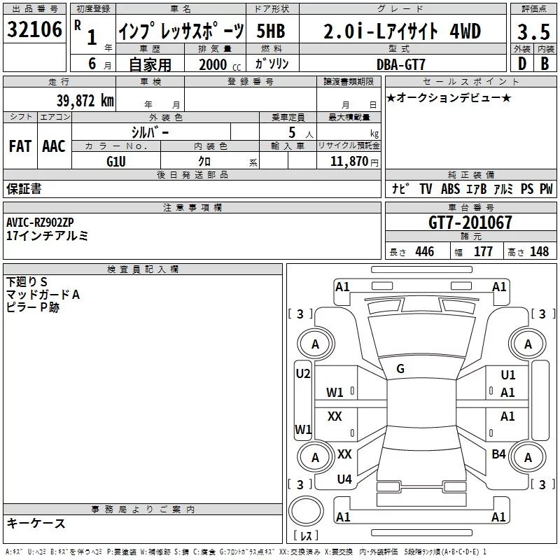 • Комплектация: 2.0i-L Eyesite 4WD