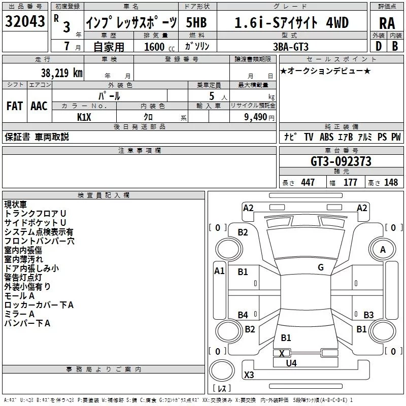 • Комплектация: 1.6i-S Eyesite 4WD