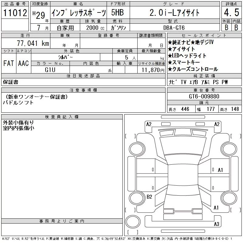 • Комплектация: 2.0i-L Eyesite