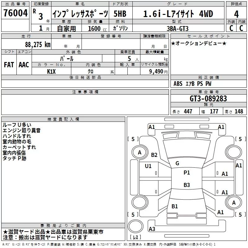 • Комплектация: 1.6i-L Eyesite 4WD