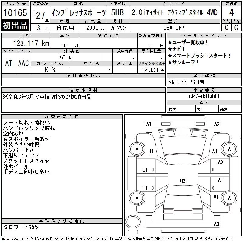 • Комплектация: 2.0i Eyesite Active 4WD