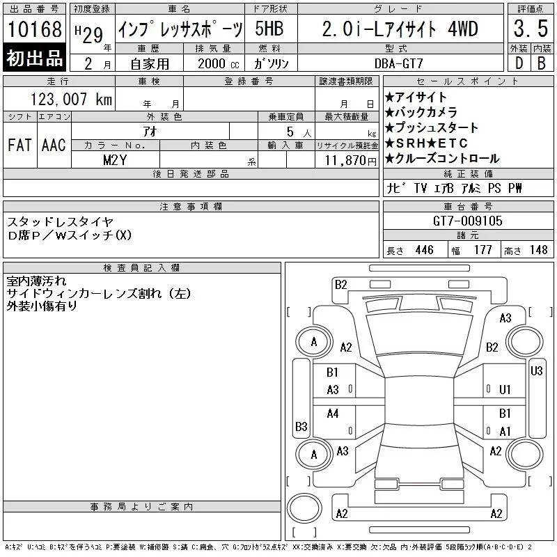 • Комплектация: 2.0i-L Eyesite 4WD