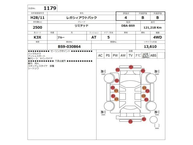 Subaru LEGACY OUTBACK 2016 • 5320377 ₽ под ключ из Японии
