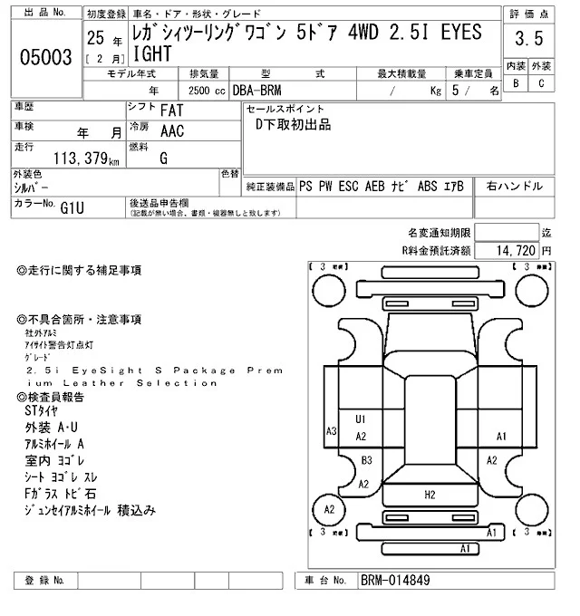 • Комплектация: 2.5i EyeSight