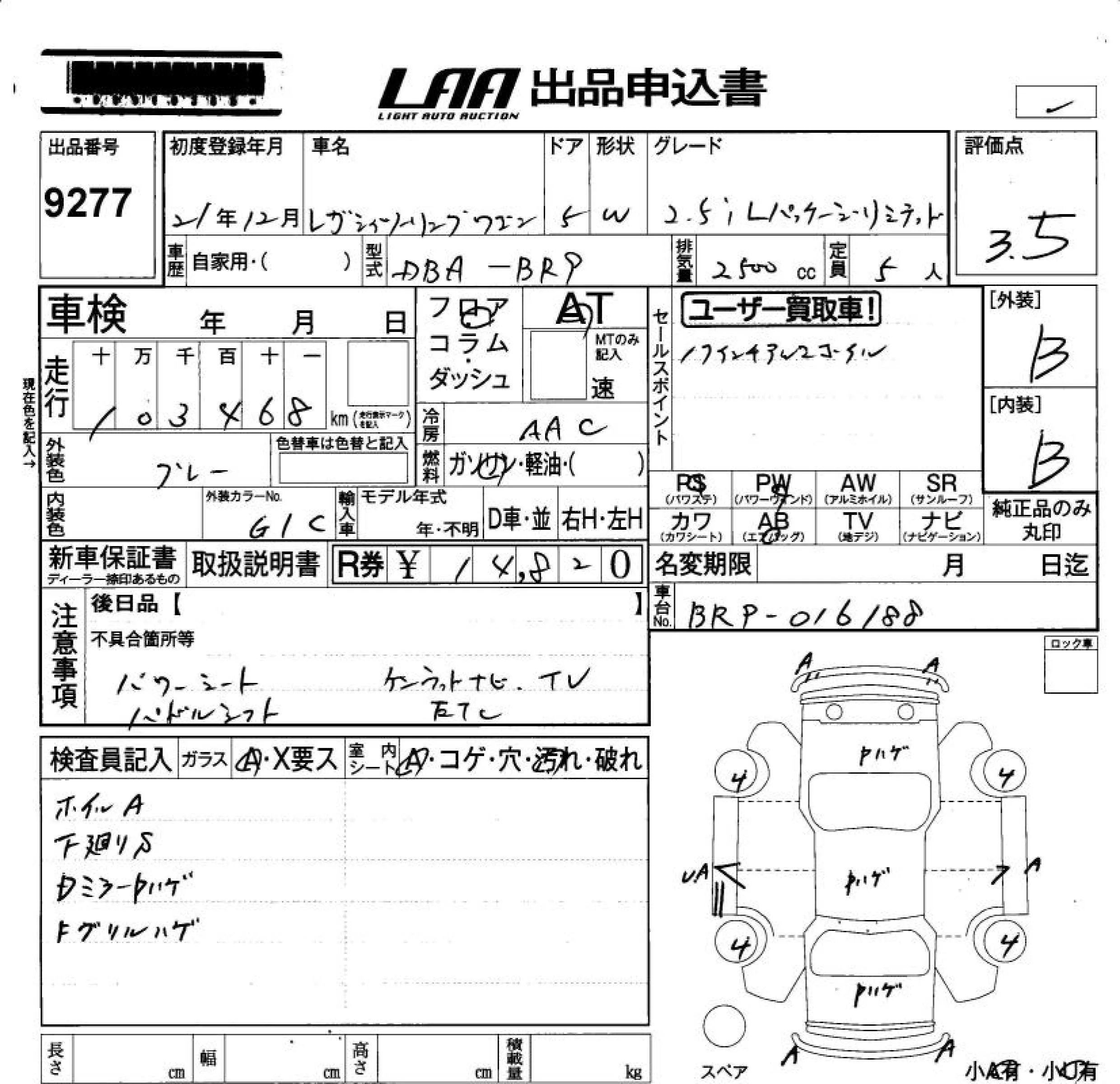 • Комплектация: 2.5i L Package リミテッ