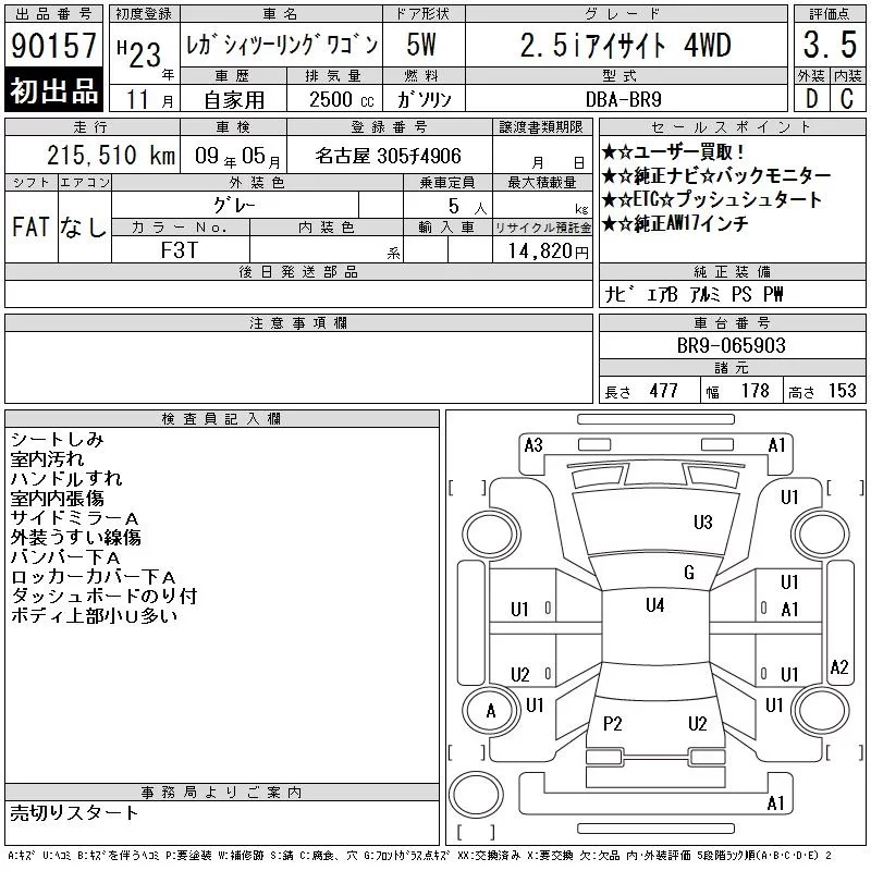 Subaru LEGACY 2011 • 1792306 ₽ под ключ из Японии