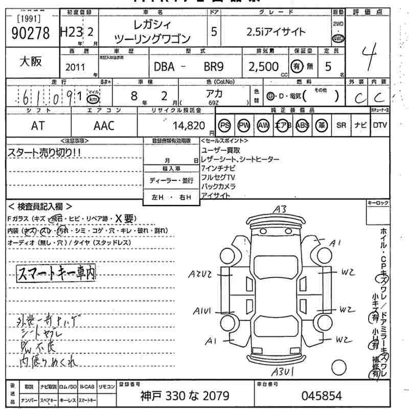 Subaru LEGACY 2011 • 1795774 ₽ под ключ из Японии