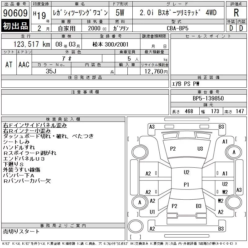 - Комплектация: 2.0i B Sports リミテット 4WD