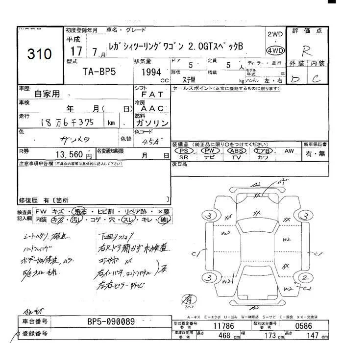 - Комплектация: 4WD 2.0GT Specification .B