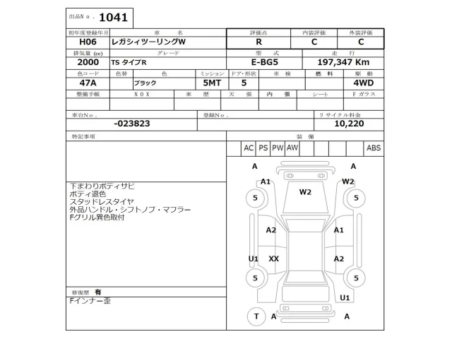 TX TYPE S | E-BD5 | EJ20 | Full-time 4WD | 4AT | 1994cc | 125ps(92kW)/5500rpm | AИ-92 | 2 023 000 | |