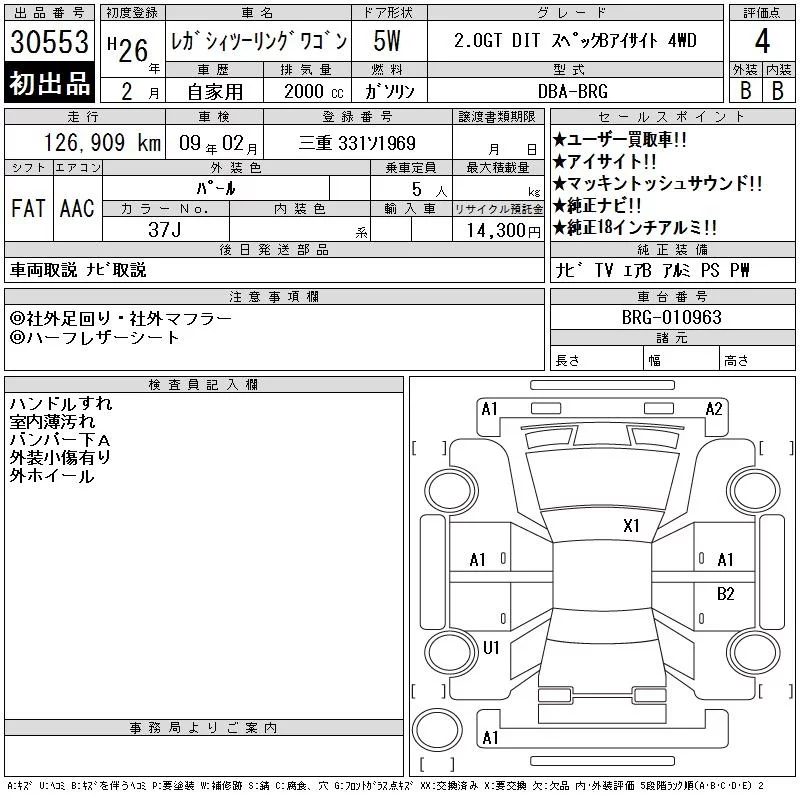 • Комплектация: 2.0GT DIT Specification Bア 4WD