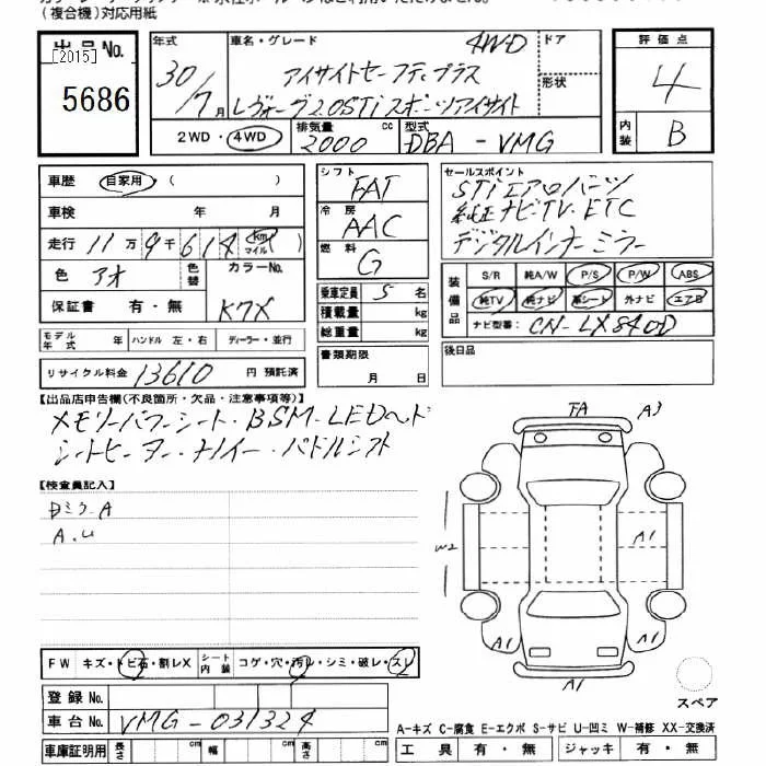 • Комплектация: 4WD 2.0STI Sports Eyesite Eyesite セ-フテ