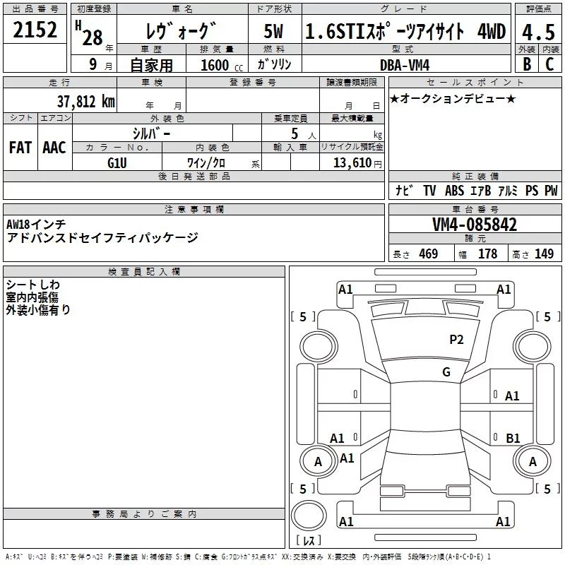 • Комплектация: 1.6STI Sports Eyesite 4WD