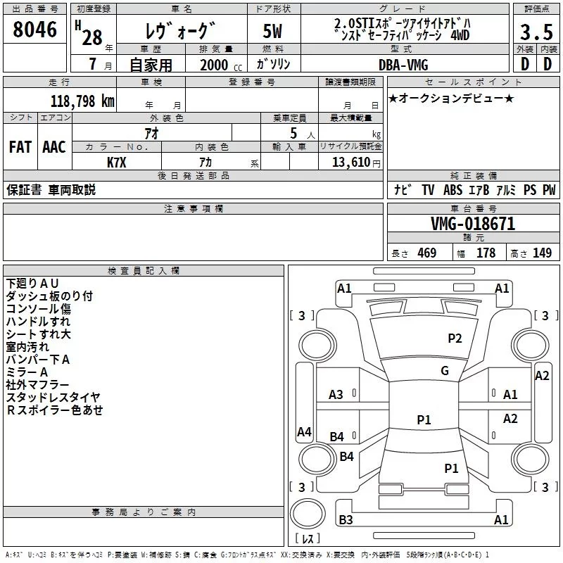 - Комплектация: 2.0STI Sports Eyesite 4WD
