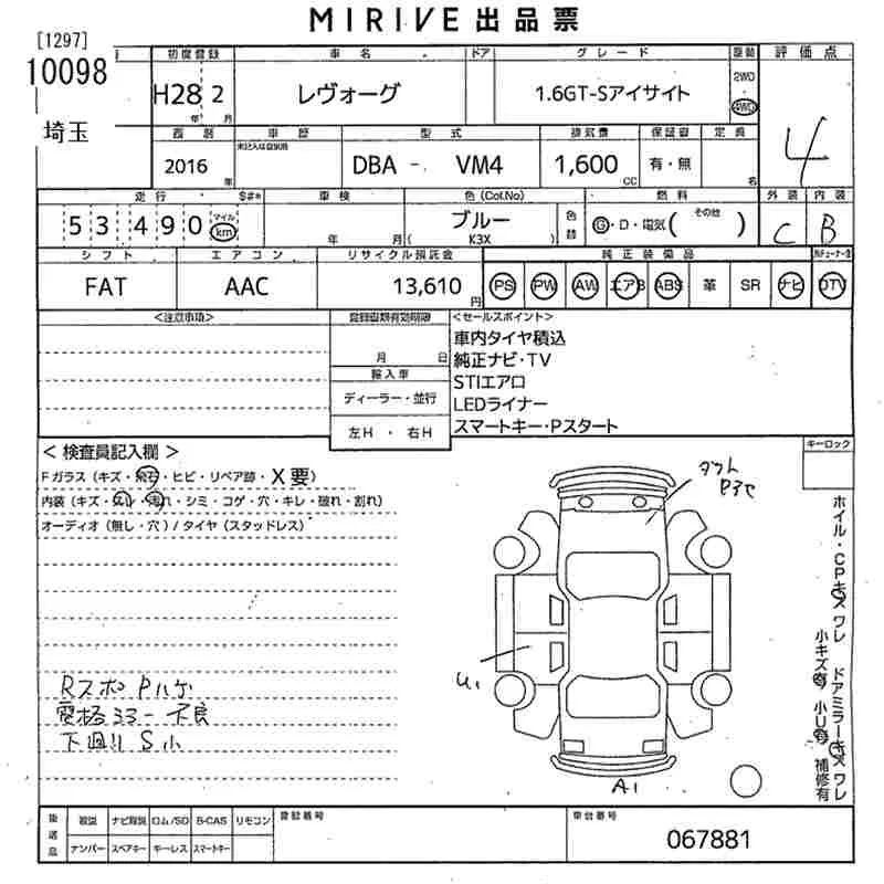 Subaru LEVORG 2016 • 1312258 ₽ под ключ из Японии