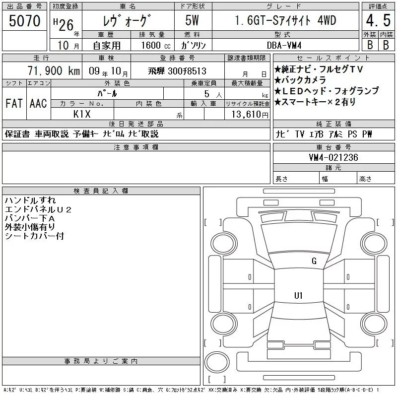 Subaru LEVORG 2014 • 2685605 ₽ под ключ из Японии