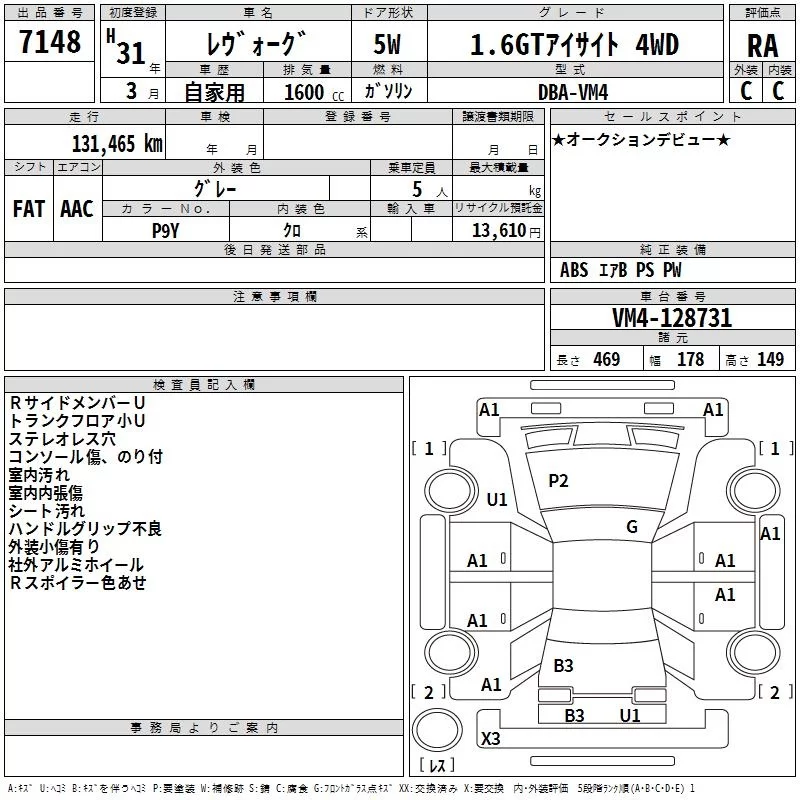 Subaru LEVORG 2019 • 1038047 ₽ под ключ из Японии