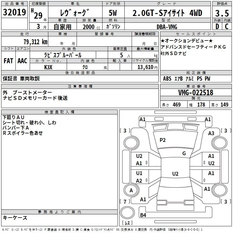 - Комплектация: 2.0GT-S Eyesite 4WD