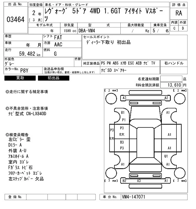 • Комплектация: 1.6GT Eyesite V Sports