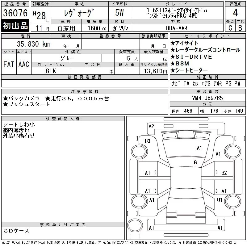 - Комплектация: 1.6STI Sports Eyesite 4WD