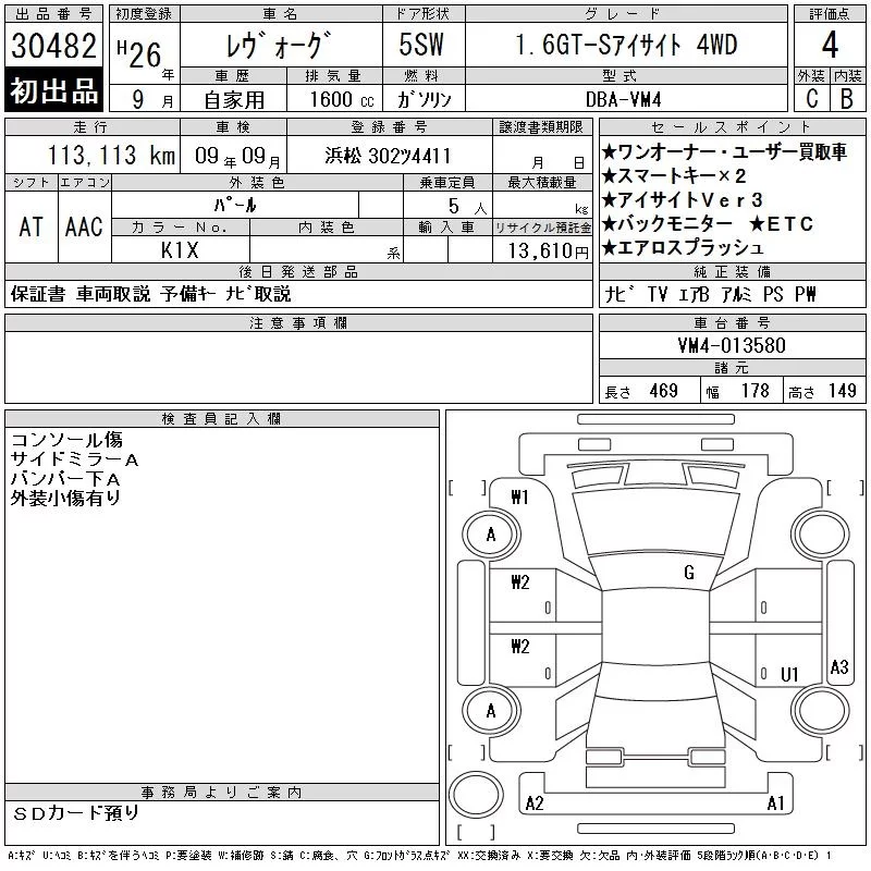 Subaru LEVORG 2014 • 1106619 ₽ под ключ из Японии