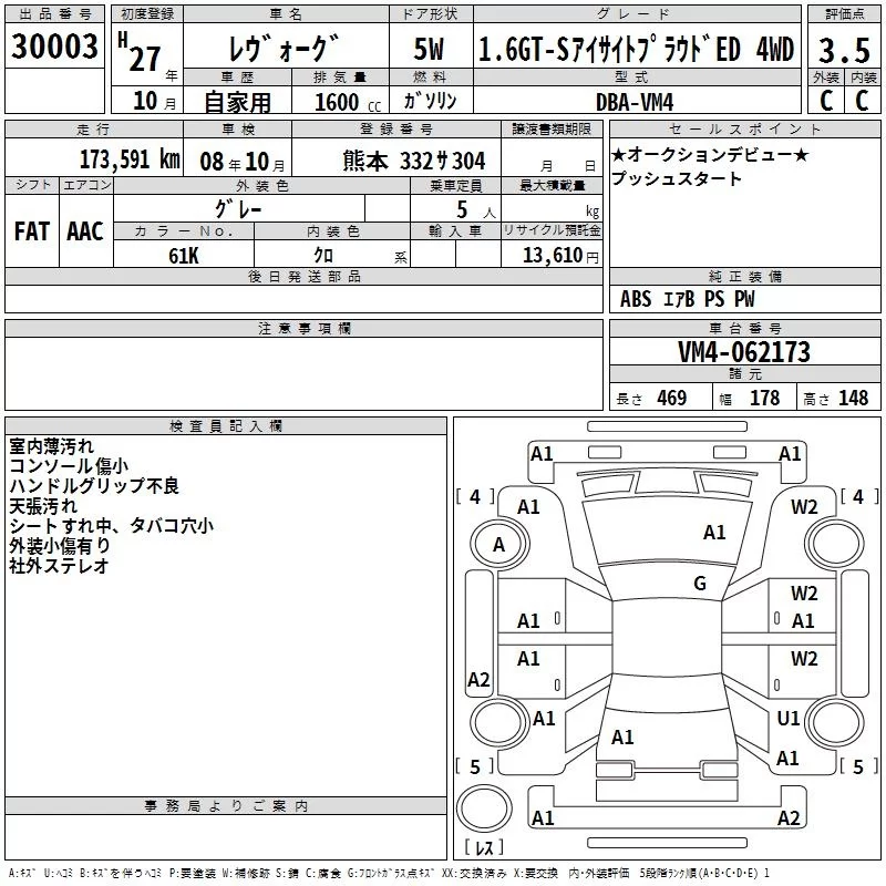 - Комплектация: 1.6GT-S Eyesite プラウ 4WD