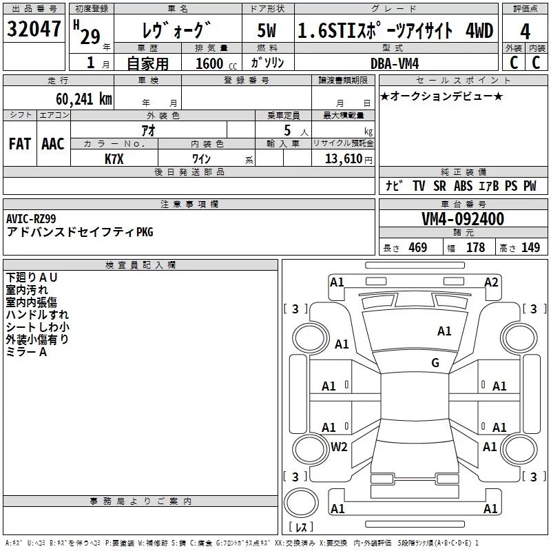 - Комплектация: 1.6STI Sports Eyesite 4WD