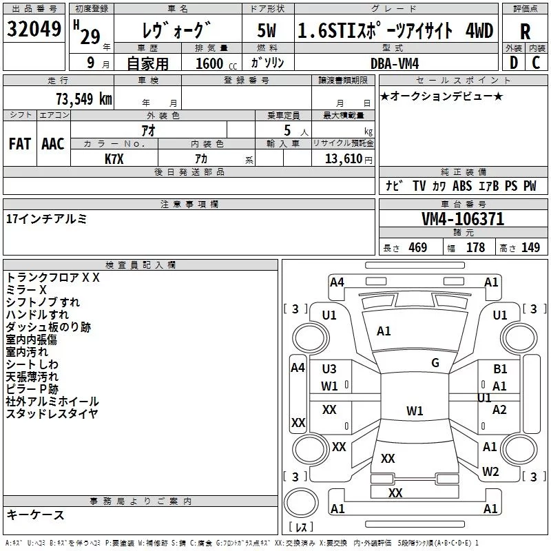 • Комплектация: 1.6STI Sports Eyesite 4WD