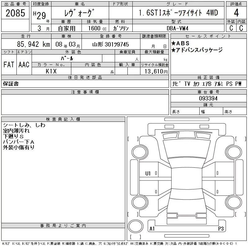 - Комплектация: 1.6STI Sports Eyesite 4WD