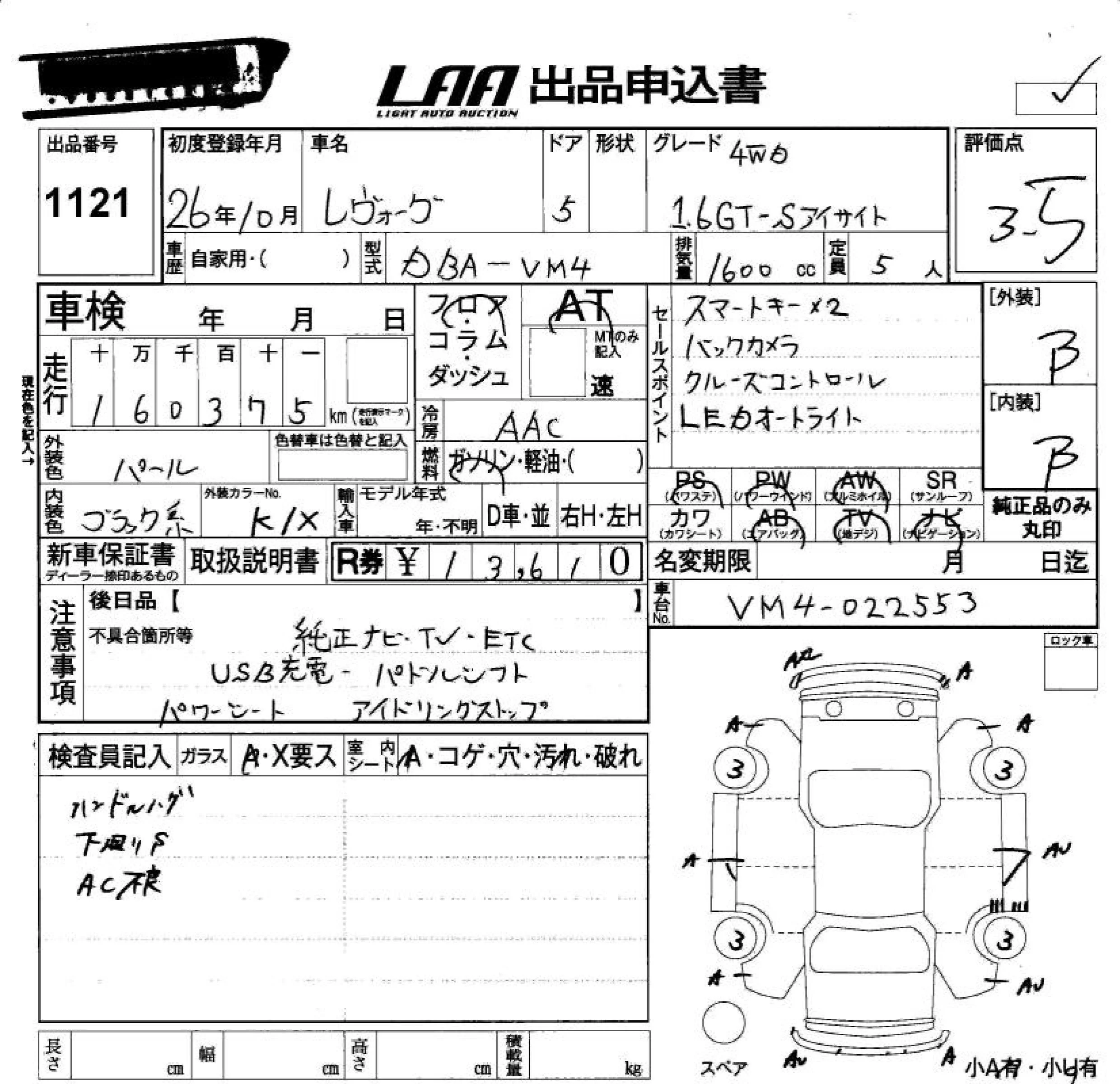 - Комплектация: 1.6GT-S Eyesite 4W