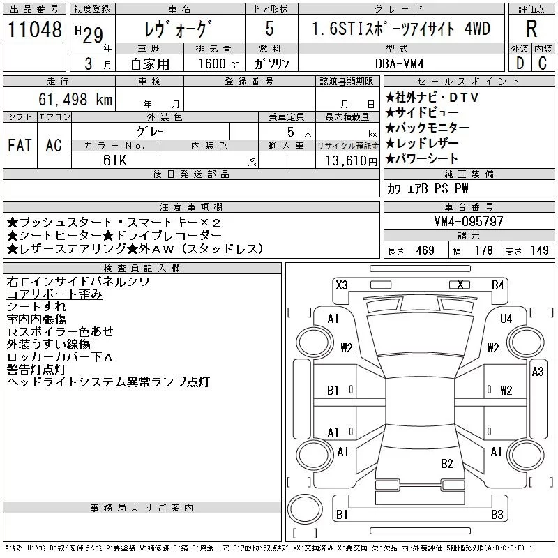 • Комплектация: 1.6STI Sports Eyesite 4WD